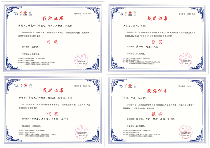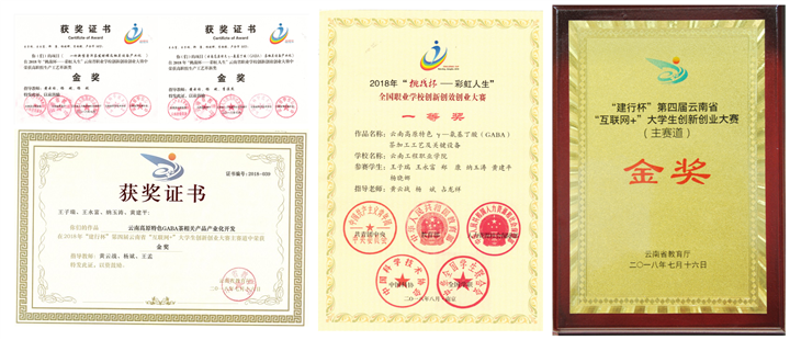 《云南高原特色γ-氨基丁酸茶(GABA)产业化股份有限公司》、《互联网+云南特色食品》项目荣获省级“银奖”;
