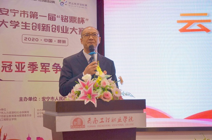 云南工程职业学院子重仁校长在大赛发言上说道,安宁市首届大学生创新创业大赛是安宁市高校大学生创新创业活动的一件盛事,作为此次大赛的承办单位之一,我谨代表云南工程职业学院全体教职员工向安宁市政府及相关部门表示衷心的感谢!向为大赛付出辛勤努力的全体工作人员、评委们致以诚挚的问候!对莅临我校参赛的各兄弟院校领导、老师、同学们表示热烈的欢迎!