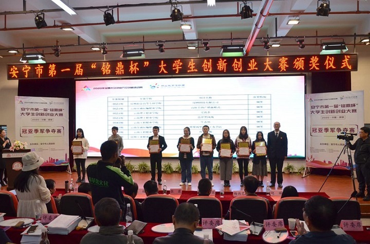 2020年10月30日,由安宁市人民政府主办的“安宁市第一届铭鼎杯大学生创新创业大赛”冠亚军争夺赛在云南工程职业学院圆满落幕。安宁市举办的第一届“铭鼎杯”大学生创新创业大赛是安宁市深入贯彻落实科学发展观,引导广大青年大学生积极投身服务安宁经济发展的一项重要活动,必将成为推进安宁加速发展、促进就业的一项重要举措。这次大赛,能进一步优化安宁市青年大学生的创业环境,营造良好的创业氛围,扶持树立一批优秀的大学生创业典型,形成社会各界关心支持青年大学生创业的良好局面。安宁市8所职业院校的44支队伍260余名学生参加了比赛。
