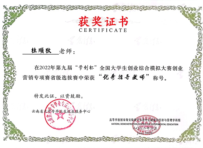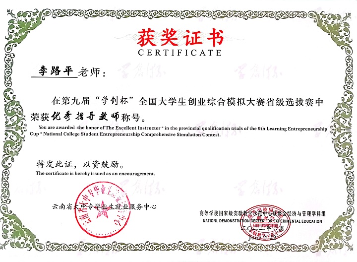 6月28日,第九届“学创杯”全国大学生创业综合模拟大赛云南赛区选拔赛落下帷幕。云工学子在省赛上再创佳绩,由学校经济信息学院杜顺狄、李路平老师共同指导的代表队分别荣获二等奖4项,三等奖2项,同时杜顺狄老师和李路平老师都荣获省赛“优秀指导教师”。