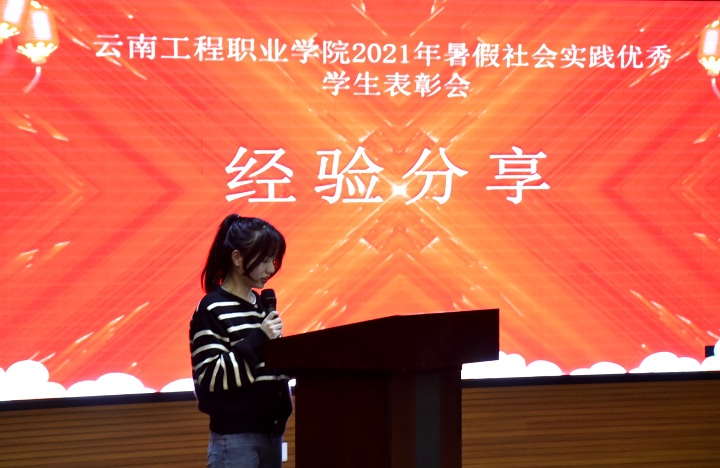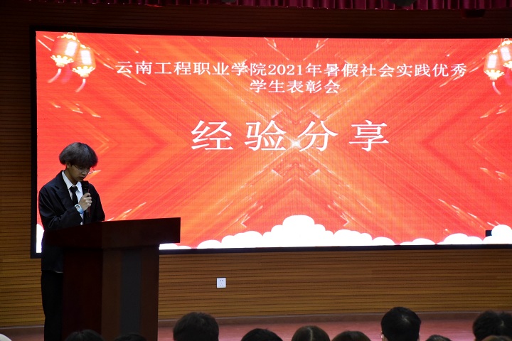 会上优秀学生代表进行了交流发言,讲述和分享了他们在本次社会实践活动中的经历和感受,体会到了劳动艰辛,人生的价值、感动的事迹让他们认识到未来的梦想要靠自己努力奋斗、拼搏才能实现的。