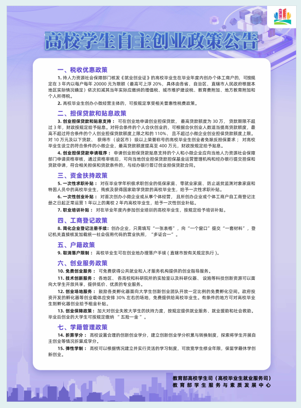 高校学生自主创业政策公告