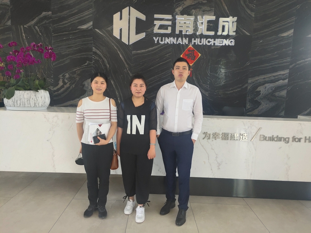 到达公司在人事专员谭飞的引领下参观了解了公司总部汇成中心的相关情况,并与该公司人事经理张天勐进行交流,不仅让走访老师对该公司有了进一步了解,也让走访老师对建筑行业的发展及单位对实习生的管理需求有了更深入地认识。由昆明市官渡区建筑工程实业公司改制而成并于1994年4月成立的云南汇成建筑工程有限公司,自1995年承建昆明市政综合开发公司4号楼工程的第一个项目以来,经过数年的发展沉淀后,2002年公司全面贯彻执行质量管理体系、职业健康管理体系、环境管理体系并提升了管理质量,2003年承建了丽江束河古镇保护开发项目,将业务拓展到昆明市以外地州,实力得到进一步增强后,在2005年承接了贵阳盛世华庭工程,进入了跨省承接大中型工程项目的发展阶段。现公司业务范国涵盖三个省(自治区),9个市(州),18个县(区),竣工和在建项目总数180余个。其中,房屋建筑工程112个,包括怒江、寻甸、丽江、禄劝、杨林、安宁、会泽、施甸、临沧、六盘水等地的地产项目、行政中心、古镇、商业街、酒店、学校、幼儿园、公共大楼等工程,市政公用工程49个,包括寻甸、丽江、禄劝、安宁、会泽等地的广场、大街、公园、道路、干道等市政项目工程,园林绿化工程16个,装修装饰工程10个。房屋建筑工程方面,目前为止,已完成房建工程项目一百多个,累计完成房建面积400余万平方米。09年被国家建设部批准为房屋建筑工程施工总承包壹级资质企业,15年被国家建设部批准为市政公用工程施工总承包壹级资质企业,19年被云南省建设厅批准为建筑装修装饰工程专业承包壹级,是昆明市建筑业协会副会长单位,先后荣获质量管理优秀企业、安全生产 先进单位、云南省建筑优质工程、“春城杯”市优质工程特等奖等荣誉70余项。2012-2017年连续六年被评为“昆明市守合同重信用企业”,2018年获评“AAA级诚信企业”。多年来积累各类资产总额24亿元,并投资成立了包括云南林聚绿化工程、云南汇聚工程设备租赁、云南汇霞农业发展、云南安宁裕华经贸、云南龙点建筑劳务、云南汇典装饰工程等7家子公司。