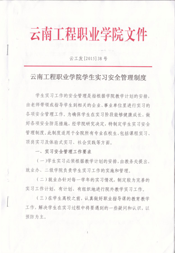 【红头文件】云南工程职业学院学生实习安全管理制度